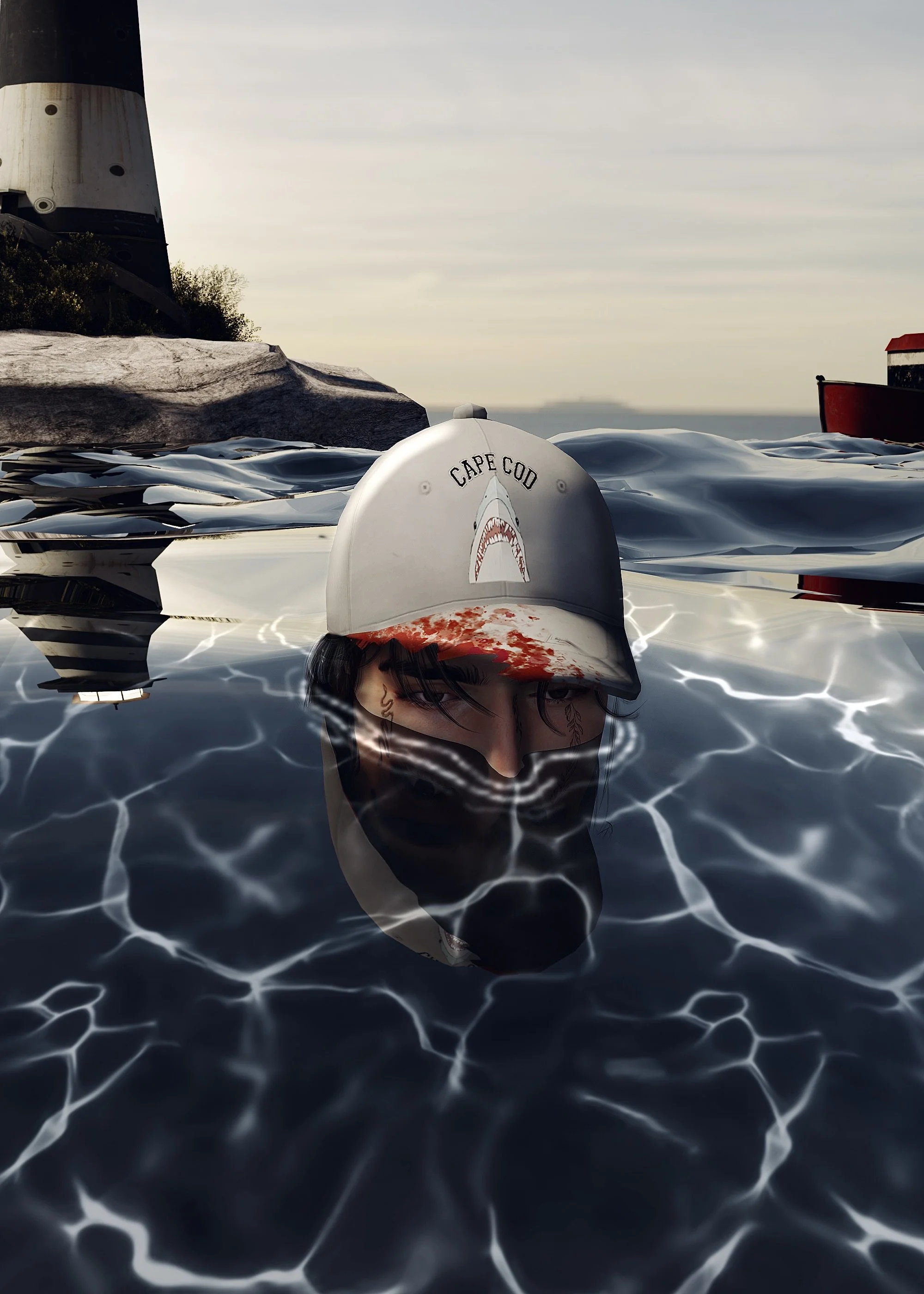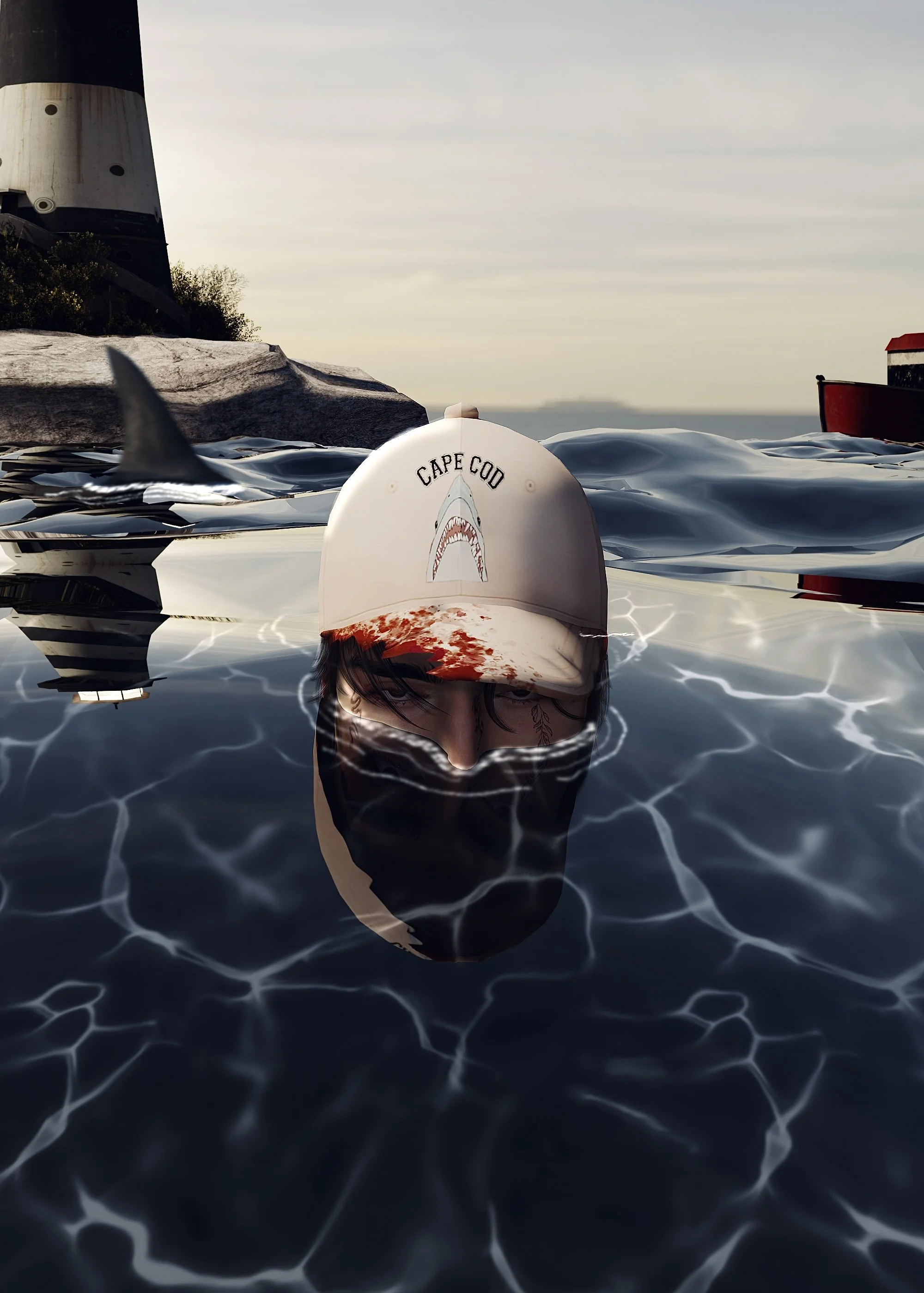 These are personal digital marketing visuals I developed using original clothing designs created in Clo3D. Each concept was built around a specific story, with the goal of capturing attention and pulling the audience into the world of the design. For the Disco Elysium hoodies, I leaned into the atmosphere of the game, translating its raw, immersive energy into the visuals. For the Cape Cod hats, I created a scene as if the viewer were submerged beneath the ocean’s surface, almost experiencing the world from a shark’s perspective. Each design is different in theme and tone, but they are all crafted to stand on their own while delivering a story that’s clear, memorable, and emotionally engaging. For me, effective digital marketing is more than just showing a product, it’s about creating a reason for people to stop, look, and feel connected. Every design here was made with that in mind.